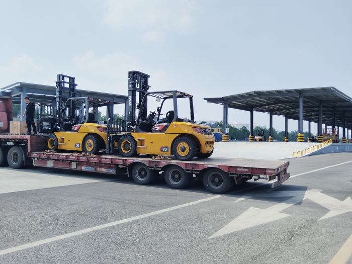 一批批大、小吨位的孔雀叉车发往全国各地,