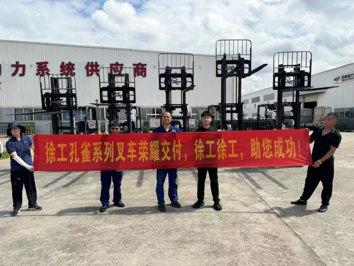 首批十余台孔雀7吨、10吨车准时到达,