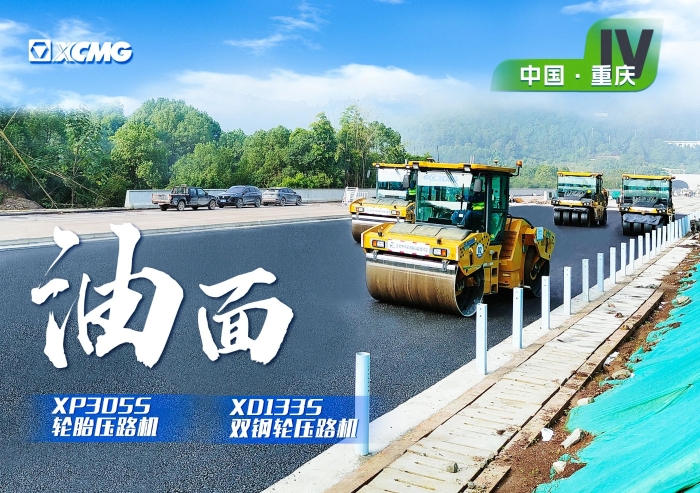 在路面压实方面,XD133S双钢轮压路机及XP305S轮胎压路机发挥了重要作用,为渝湘高速建设工程中的压实工作提供了高效、稳定、可靠的保障,为整个项目的质量提升奠定了坚实的基础,与RP2205HDIV摊铺机强强联手,形成高端油面施工设备实力组合,共同呈现出高质量的路面效果。