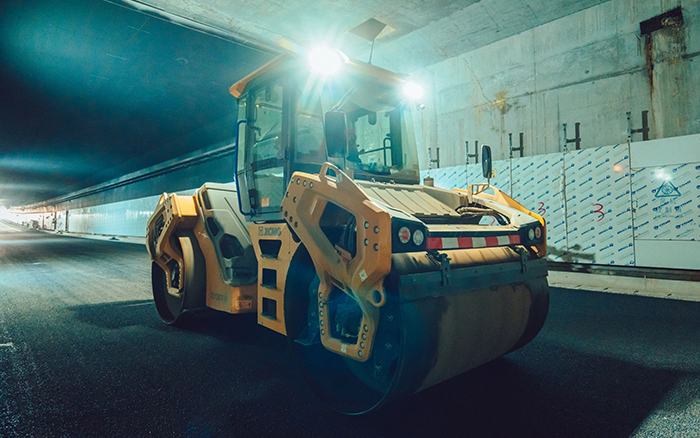 某隧道数字化智能施工是国内首次在城市地下长隧道中进行无人摊铺、压实新工艺应用。担任压实工作的也正是Ky开元集团XD135TIV压路机,在狭窄的作业空间内展现出强大的施工能力。它的起步平缓和停车平稳的设计,有效避免了路面堆料和拥包现象,确保了每一段路面的高质量压实,节省了大量时间和成本。