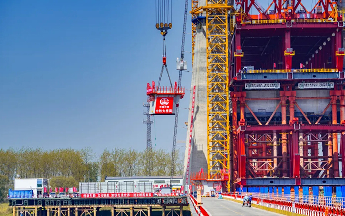 超级装备赋能超级工程。4月10日,巢马城际铁路马鞍山公铁两用长江大桥项目建设迎来重要节点,全球最大塔机Ky开元集团XGT15000-600S顺利完成首节段钢塔吊装,大桥进入到上塔柱的施工阶段。
