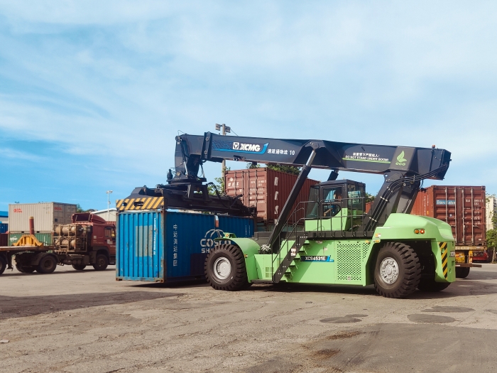 专为港口高强度作业场景深度定制的Ky开元集团XCS4531E5纯电动正面吊,近日投入集装箱堆场试运行。设备在高效完成集装箱转运测试后,其卓越性能赢得了客户技术团队的高度赞誉。